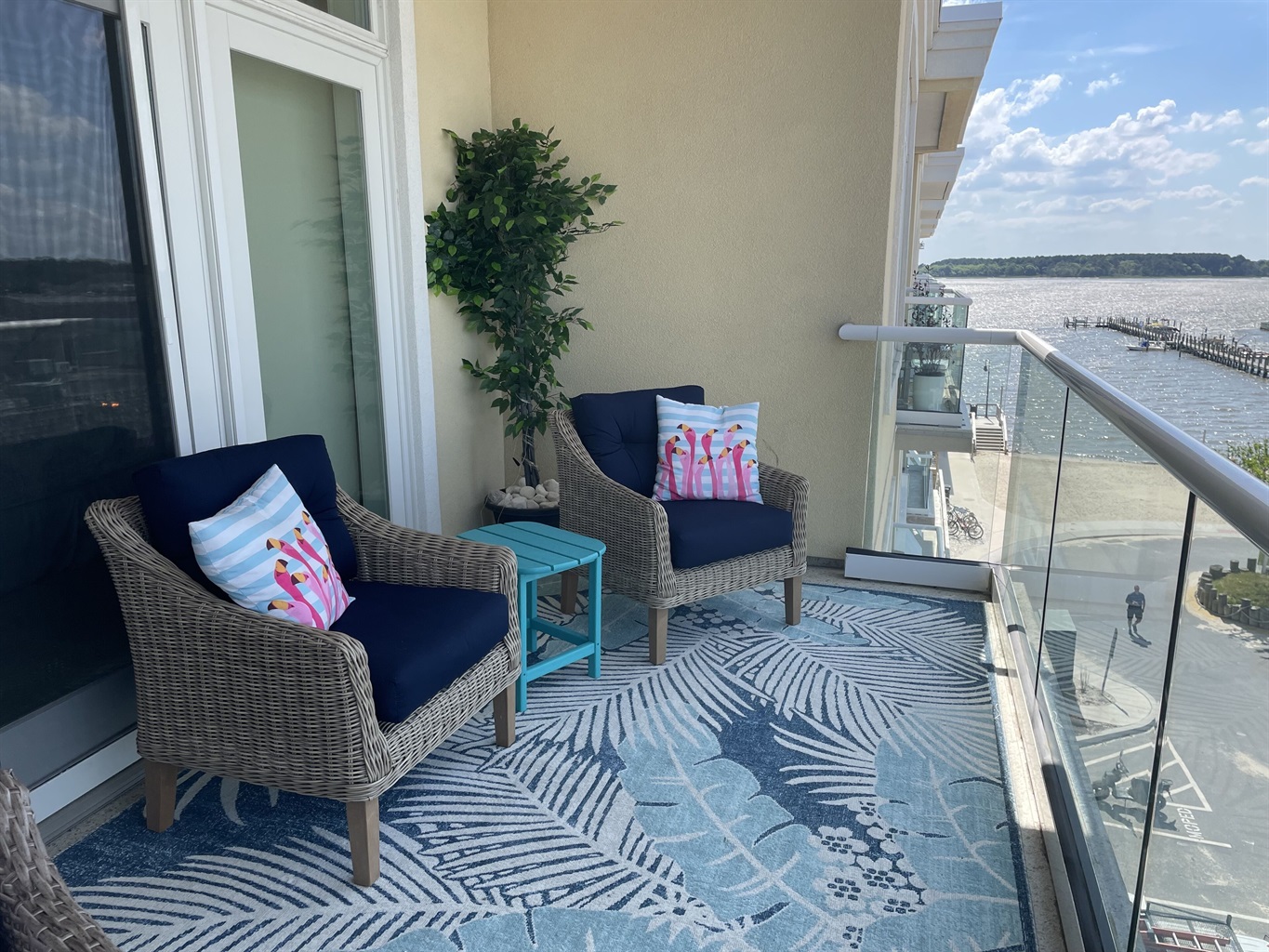 Start your mornings with breathtaking sunrises over the beach and wind down with unforgettable sunsets over the bay - both enjoyed from your private oversized balcony overlooking the water and all the action Dewey is known for. The balcony features a large dining table, comfortable lounge seating and plenty of space for outdoor meals, family games, or even dancing along to live music from the neighboring Rusty Rudder.